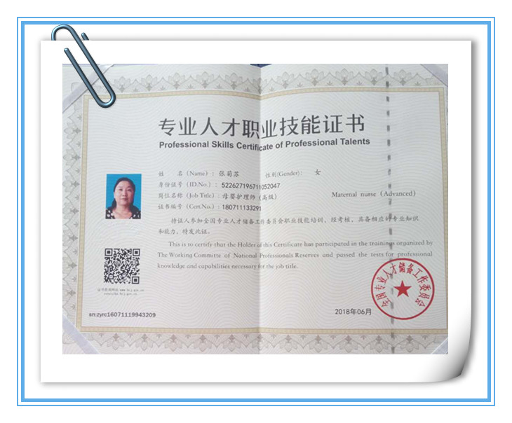 级别:中级育婴师/初级月嫂 证书:高级母婴护理师