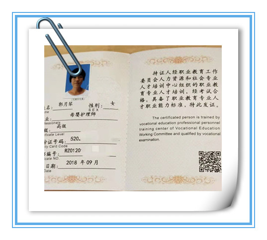 级别:中级育婴师/初级月嫂 证书:高级母婴护理师