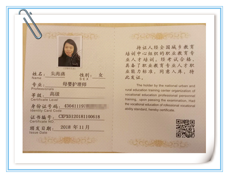 级别:初级月嫂/初级育婴师 证书:高级母婴护理