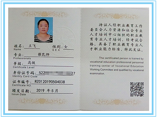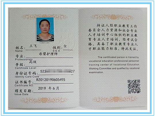 级别:初级月嫂/初级育婴师 证书:高级母婴护理师