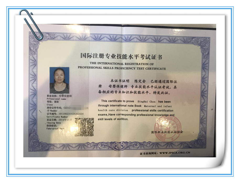 级别:高级育婴师/高级月嫂 证书:高级母婴保健师