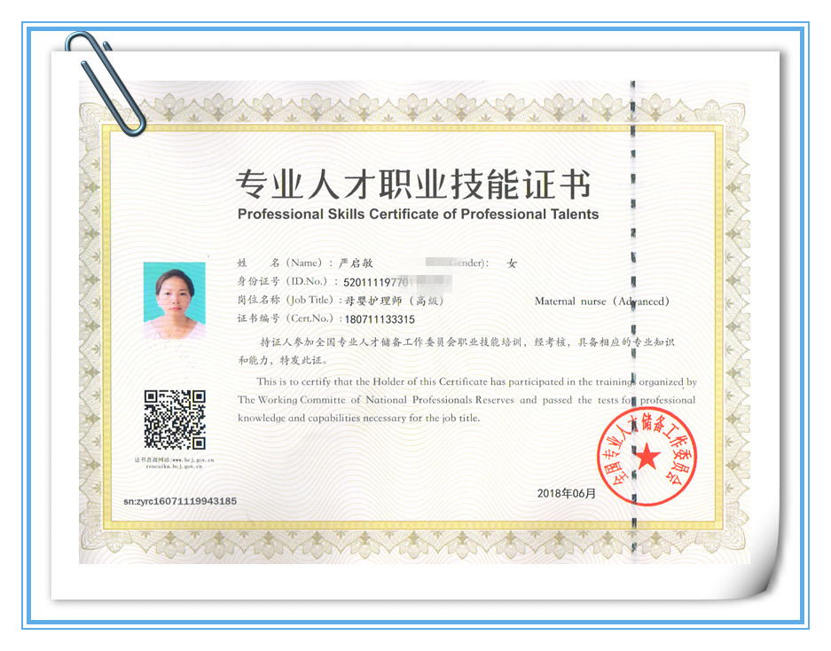 级别:高级育婴师/中级月嫂 证书:高级母婴护理师