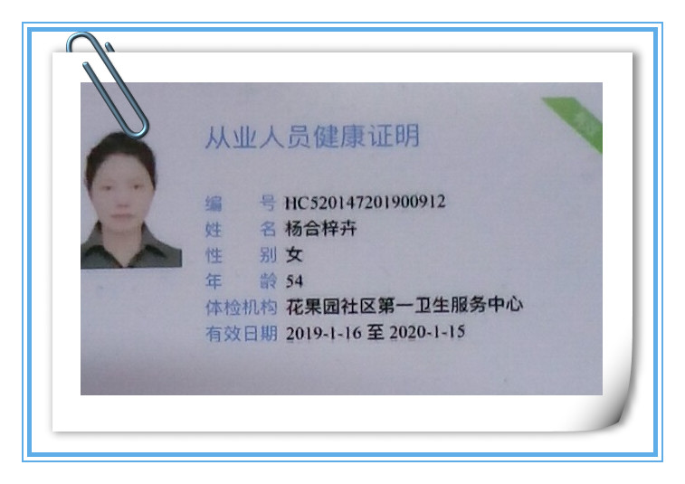 健康证明展示